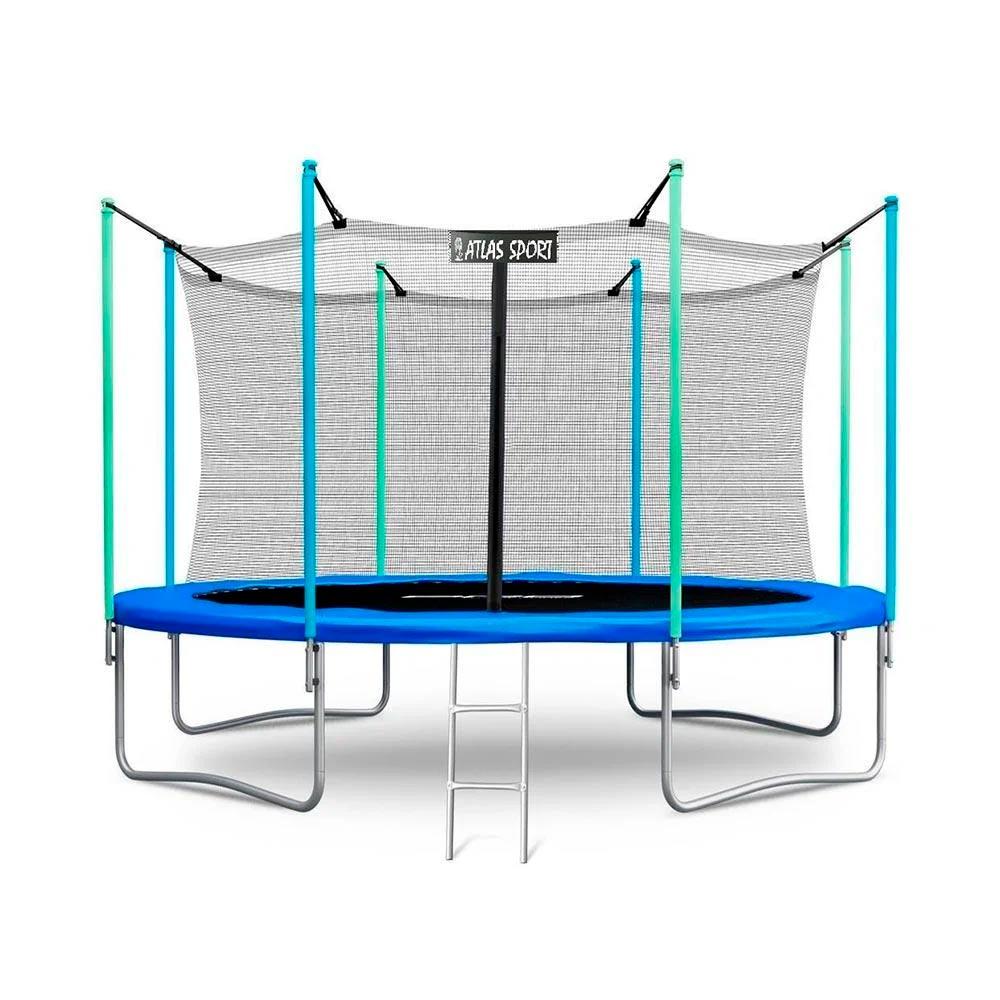 Батут Atlas Sport 435см с внутренней сеткой и лестницей (Синий)